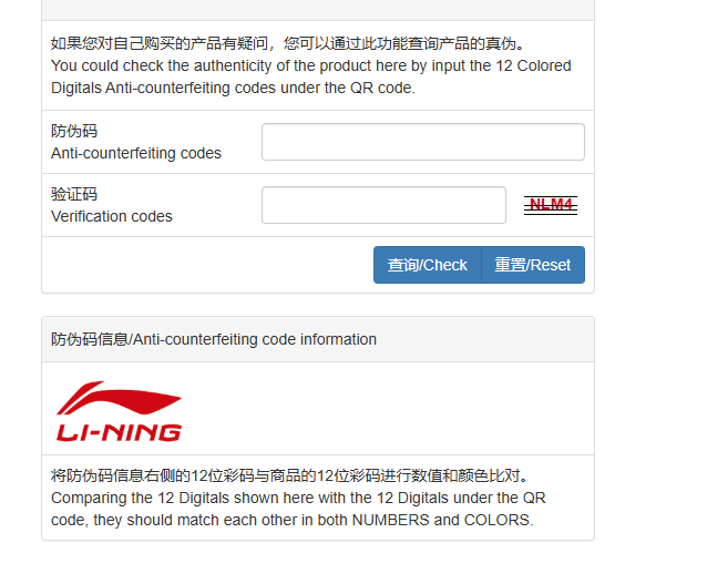 Đây là giao diện trang kiểm tra hàng chính hãng của lining