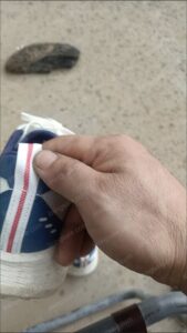 Chuyển sang phần quan trọng nhất: cảm giác mang. Mình mang thử trong nhà và chụp lại vài tấm. Khi xỏ vào, điều đầu tiên cảm nhận là cổ chân ôm nhẹ, không bị siết. Phần lưỡi gà dày vừa phải nên khi buộc chặt dây cũng không cấn lên mu bàn chân.