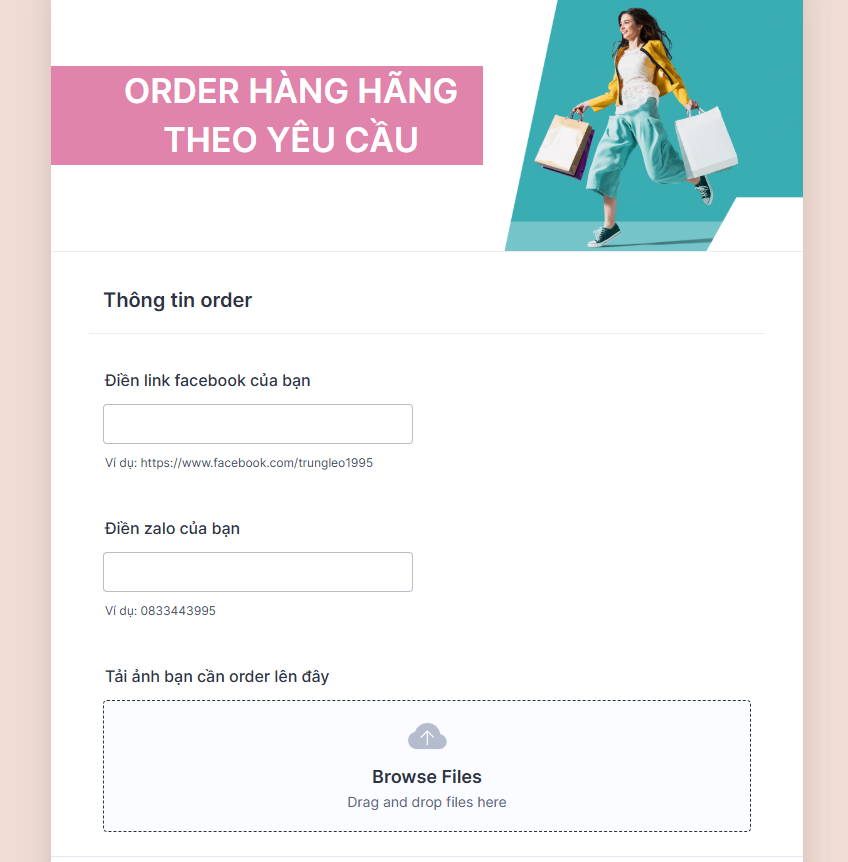 Để order các bạn vào mục https://liningsale.com/contact/ điền thông tin muốn order vào là được nhé
